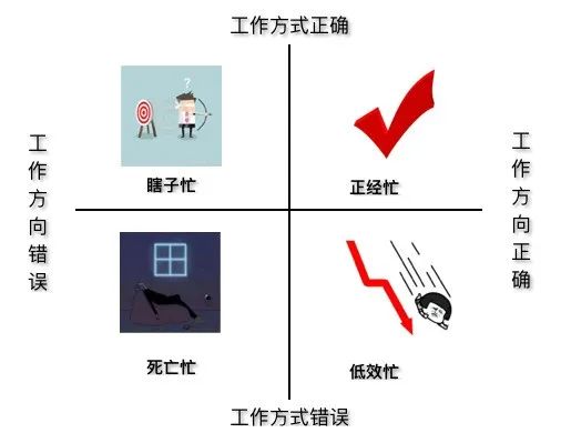 用“工作内容”和“工作方式”可以画一张2×2图,就能看出你是伪忙碌,还是真忙碌。